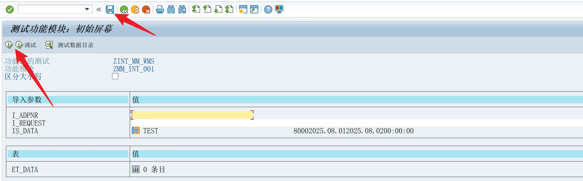接下来就可以测试了,下面的时钟按钮就是测试按钮了,时钟调试自然就是debug模式了。如果想保存参数用来多次测试,可以点击保存按钮,就可以保存到测试列表了。
