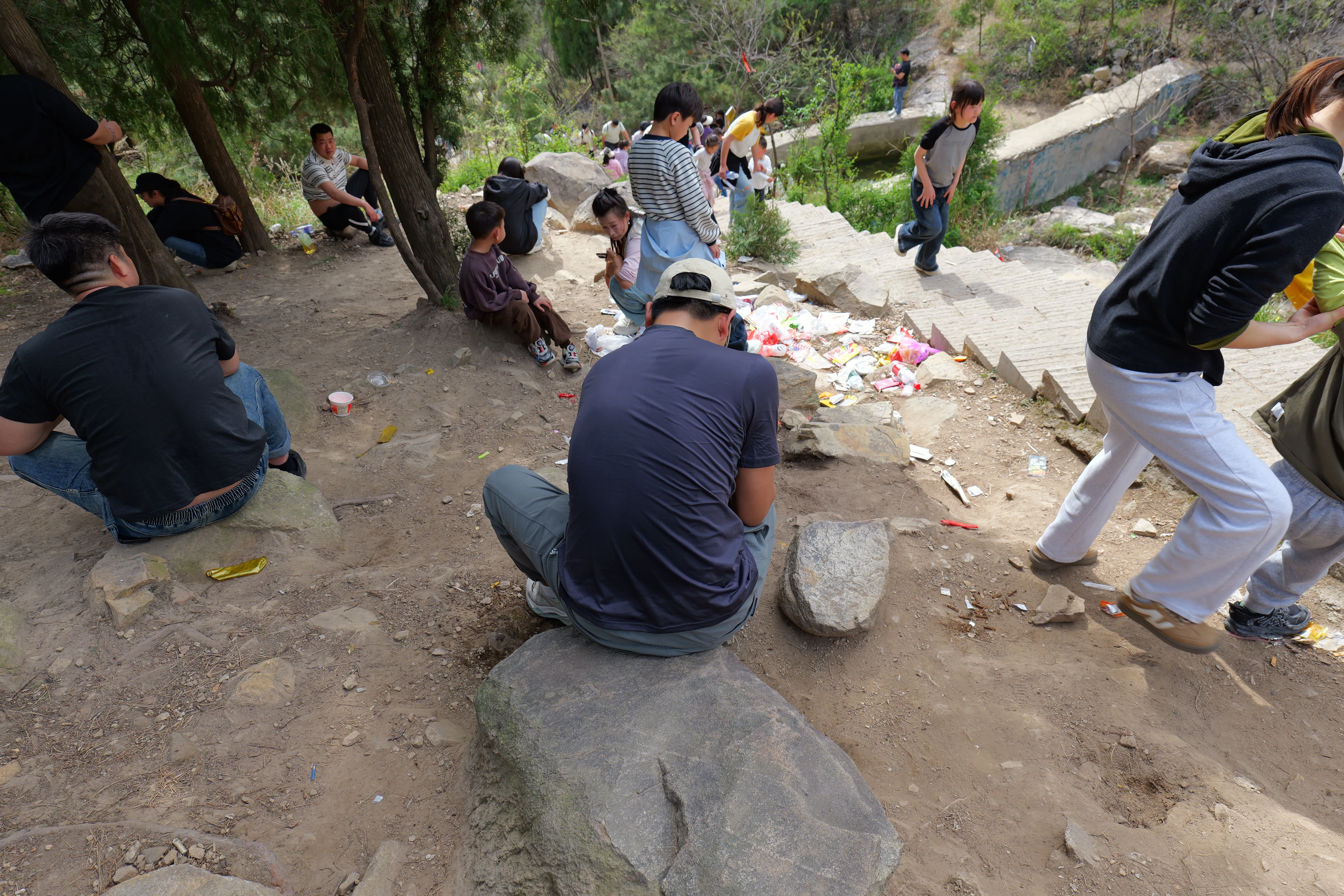 累的不行了,全是连续的台阶,很少有中间能休息的地方,找到一个有石头的地方休息下,这里蛮多垃圾,煞风景,不过这个景区的设施也不够完善,这里放一个垃圾桶好了,毕竟中间少有能休息的地方,这是为数不多可以休息的小区域。