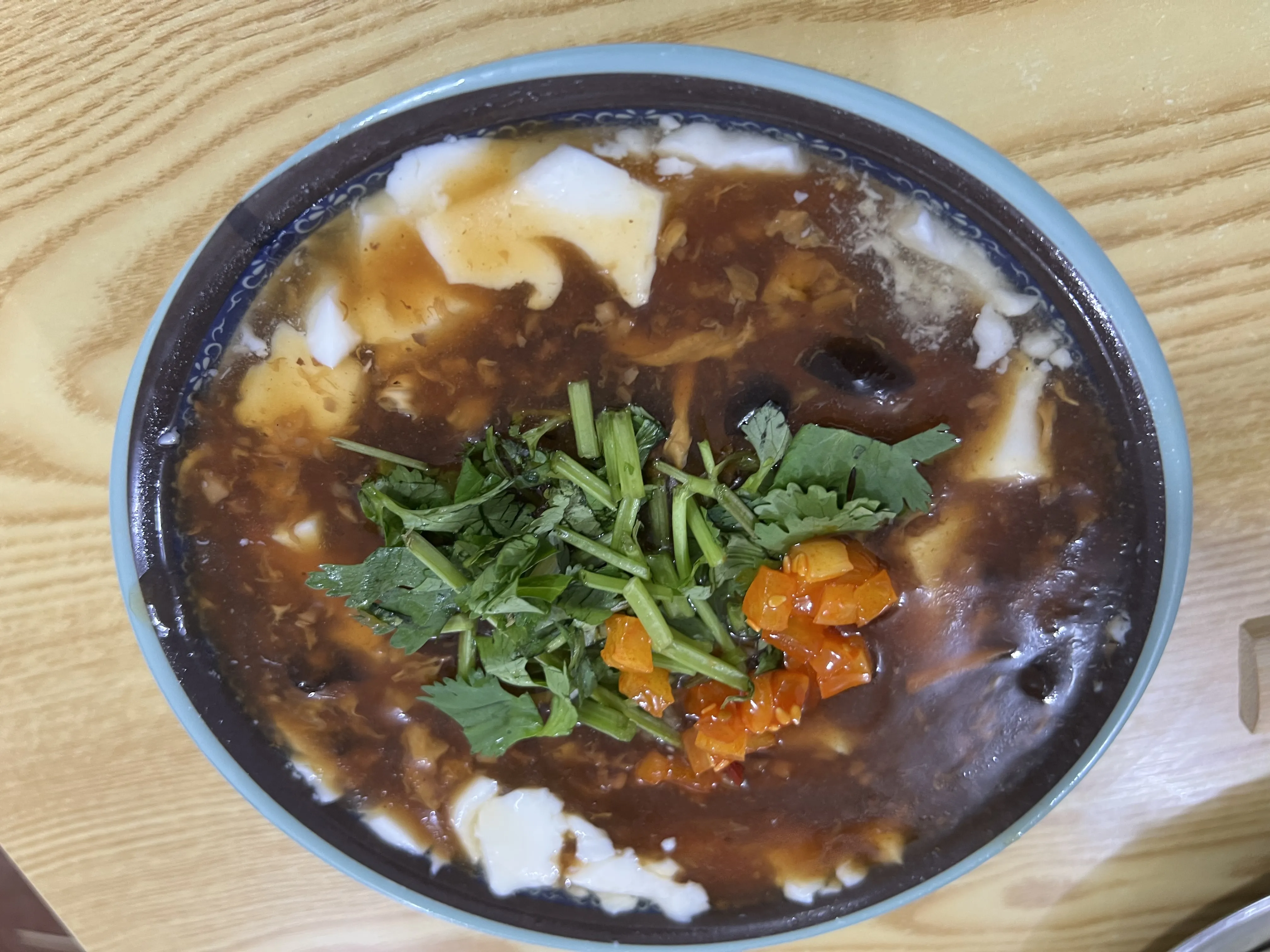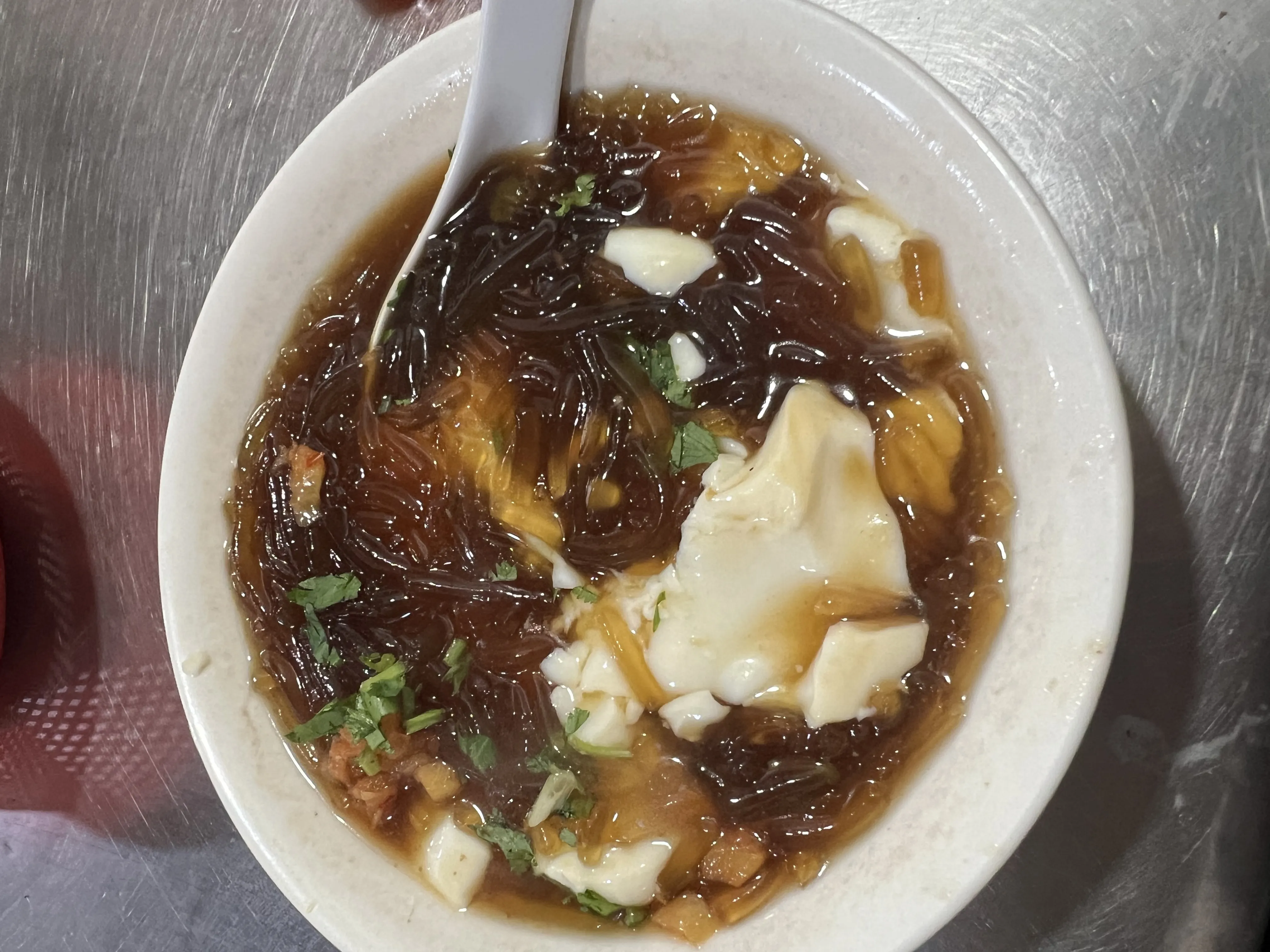 里面还有类似于豆饼之类的东西,没有味道,和之前淮南牛肉汤里面放的豆饼有点点像,都是没味道,没口感,不过这个是透明的。